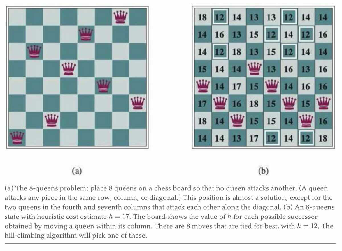 之前,我们希望通过搜索算法找出一条最优的路径到达特定的目标状态,但现在我们仅关心目标状态在哪里(此时重构路径这件事比较轻松,可以暂且不去考虑,这时我们可以用局部搜索(local search) 算法来达成这一目的。在局部搜索问题中,状态空间图是一组“完全”解的集合(;我们通过该算法找到满足某些限制或最优化某个目标函数的一种配置。