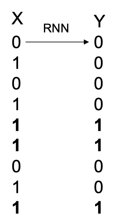 现在我们手动创建一个 RNN 来检测重复的 1,这是一个多对多的序列建模任务。