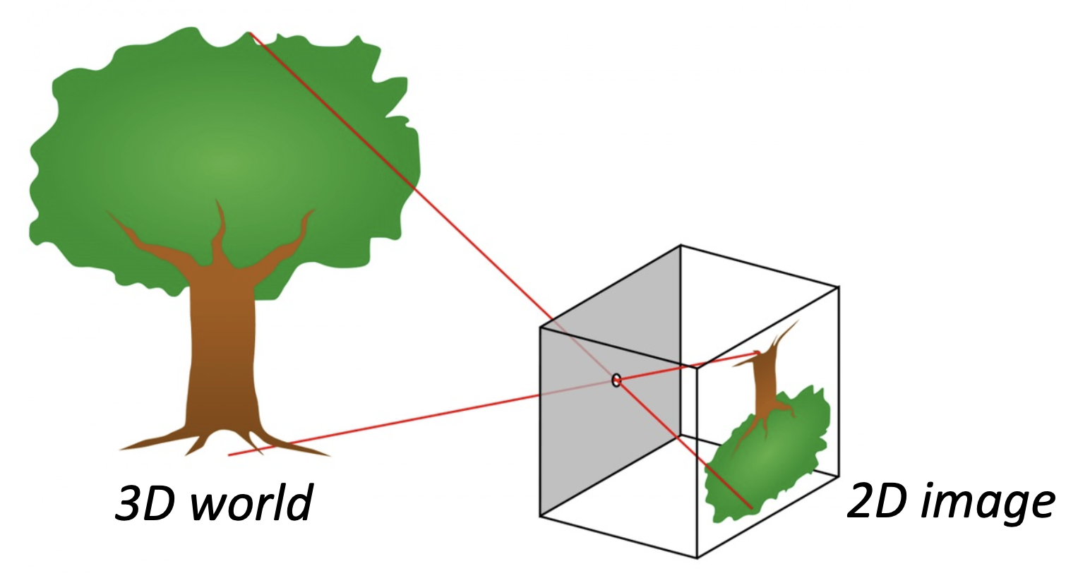 透视投影(perspective projection):三维世界坐标 -> 二维图像坐标
