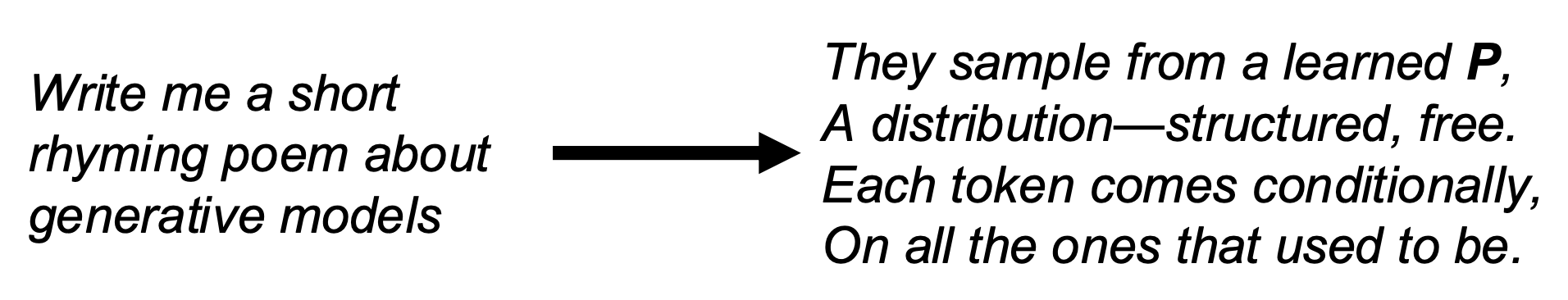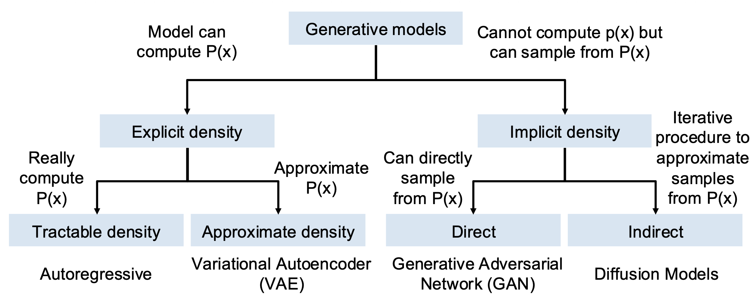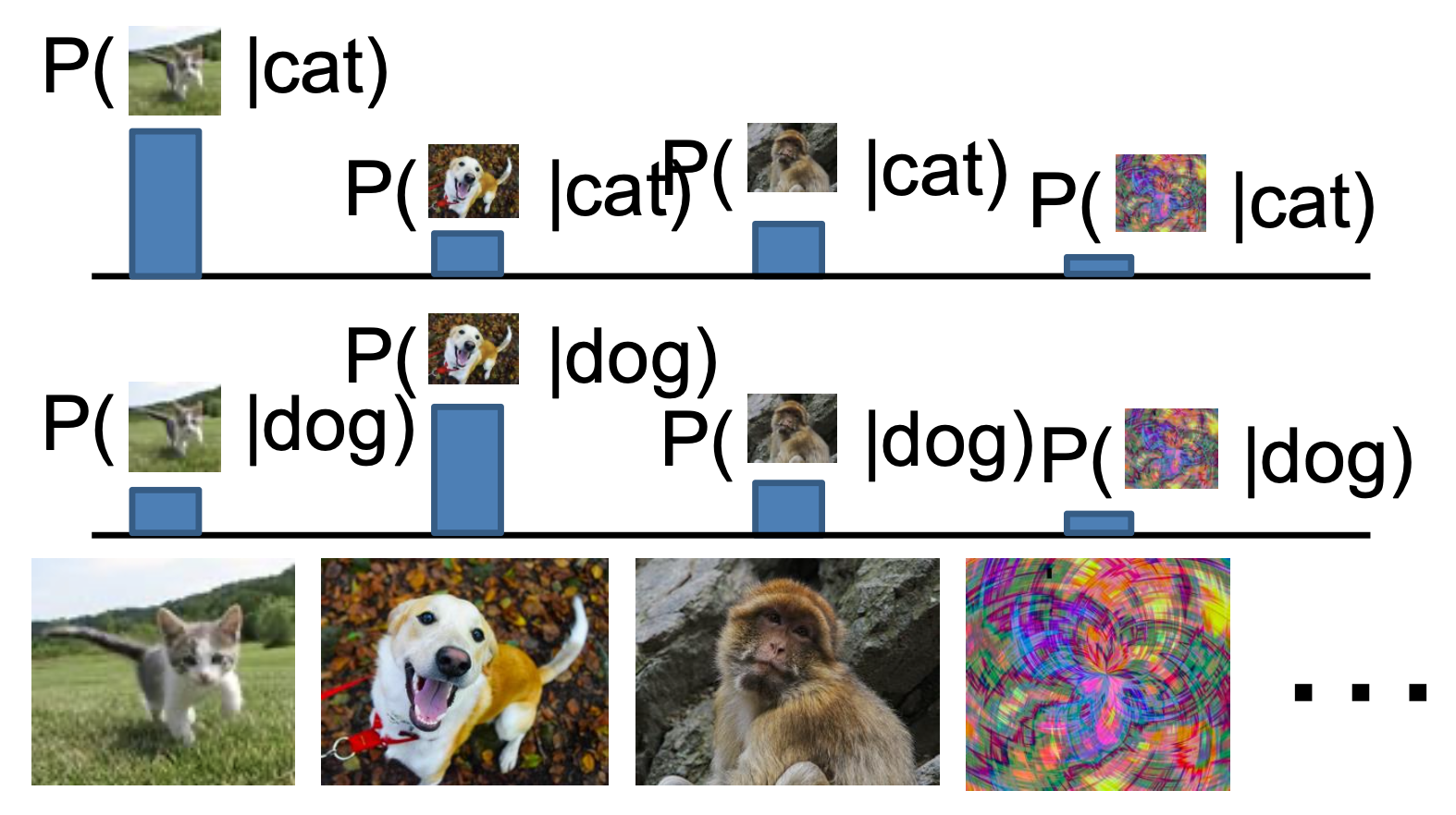使用生成式模型的主要原因是建模模糊性(modeling ambiguity) 的特性:对于输入 \(y\),有许多可能的输出 \(x\)(其概率为 \(P(x|y)\)