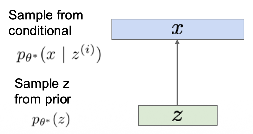 假设训练数据 \(\{x^{(i)}\}_{i=1}^N\) 生成自未观察到的(潜在)表示 \(z\)。直觉上看,若 \(x\) 是一张图像,那么 \(z\) 就是用于生成 \(x\) 的潜在因子,比如属性、方向等。