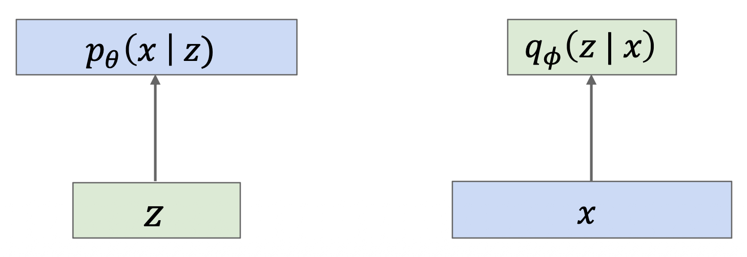 - 解决思路:训练另一个网络,得到 \(q_\phi (z|x) \approx p_\theta (z|x)\)