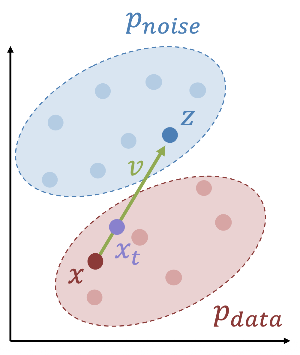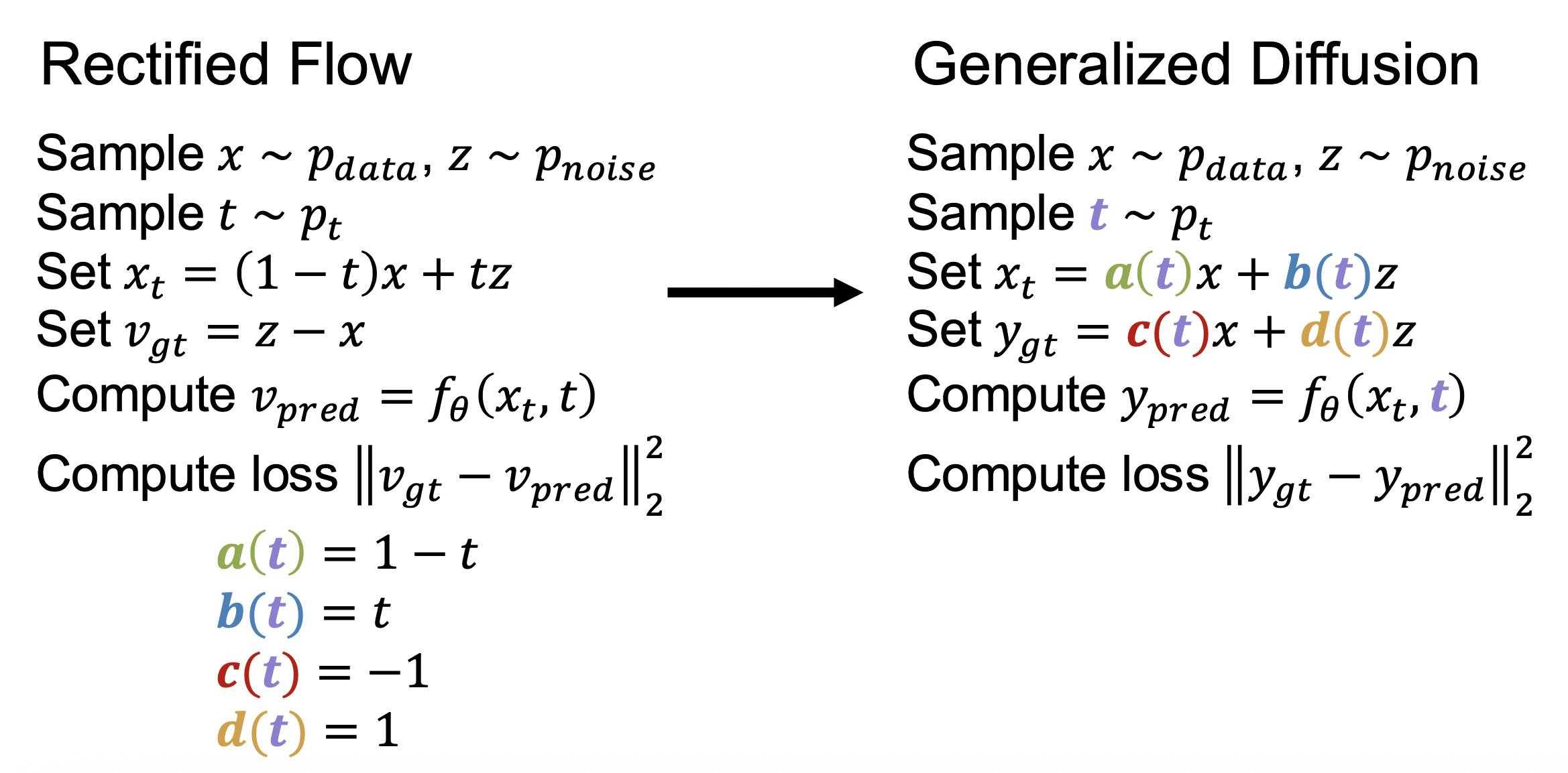 广义扩散(generalized diffusion) 模型的数学公式如下图右侧所示(和校正流对应