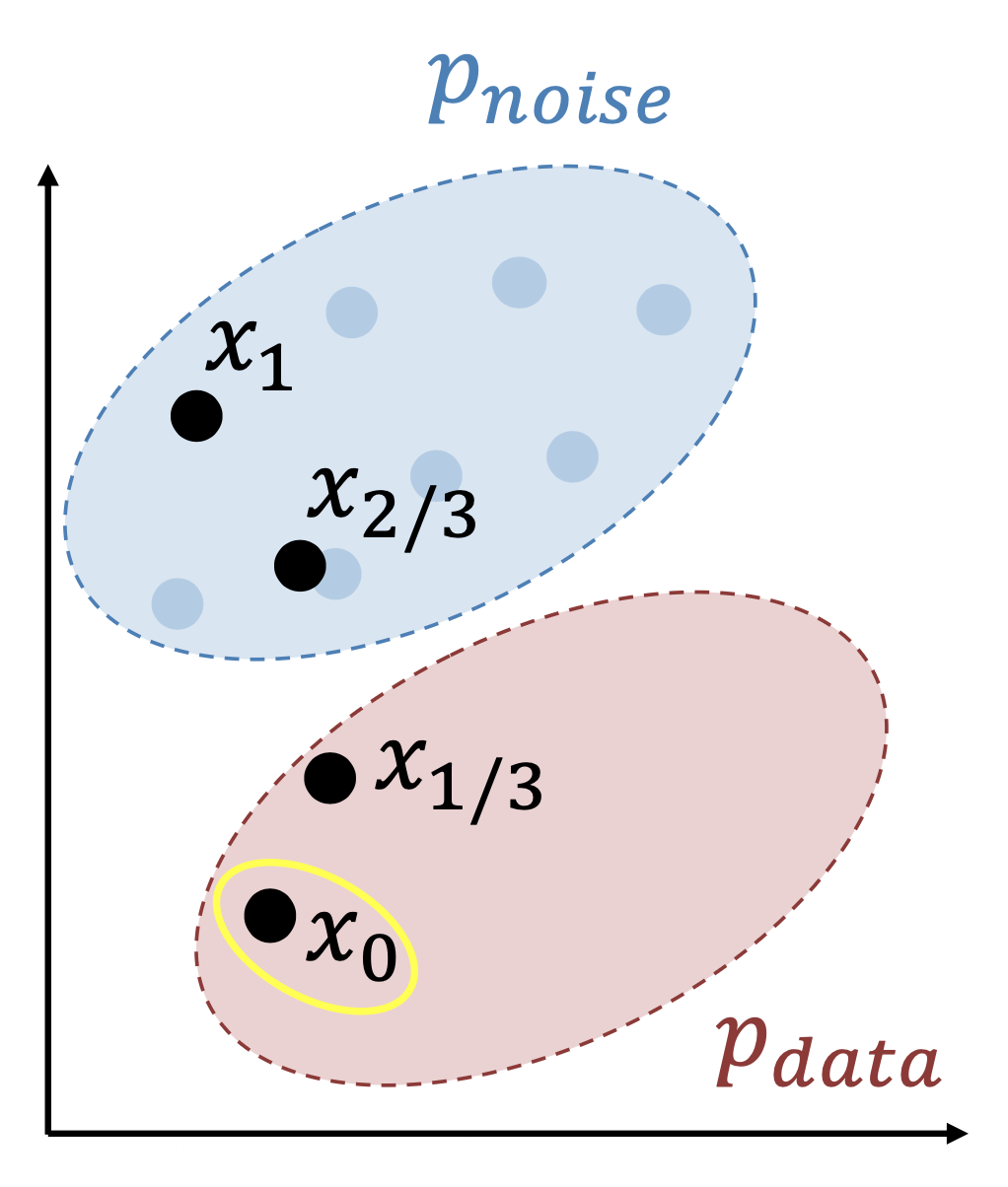 - 如右图所示,考虑噪声 \(\textcolor{plum}{x_t}\):