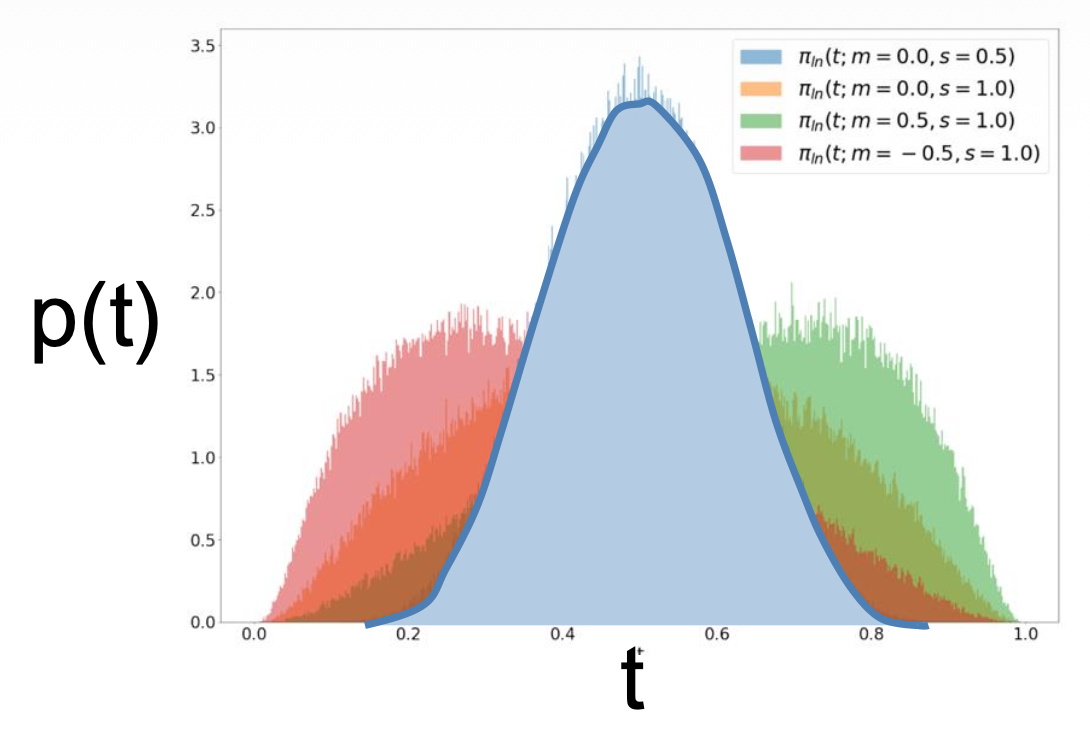 神经网络是通过输出(对角线)分布的均值(和标准差)来输出概率分布的,因此将上图转变为以下形式: