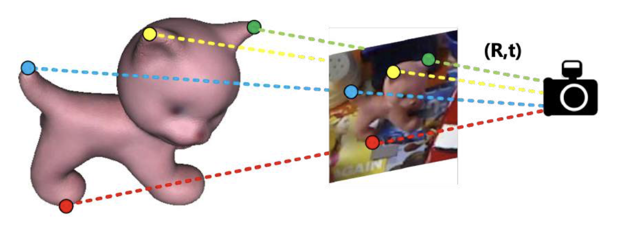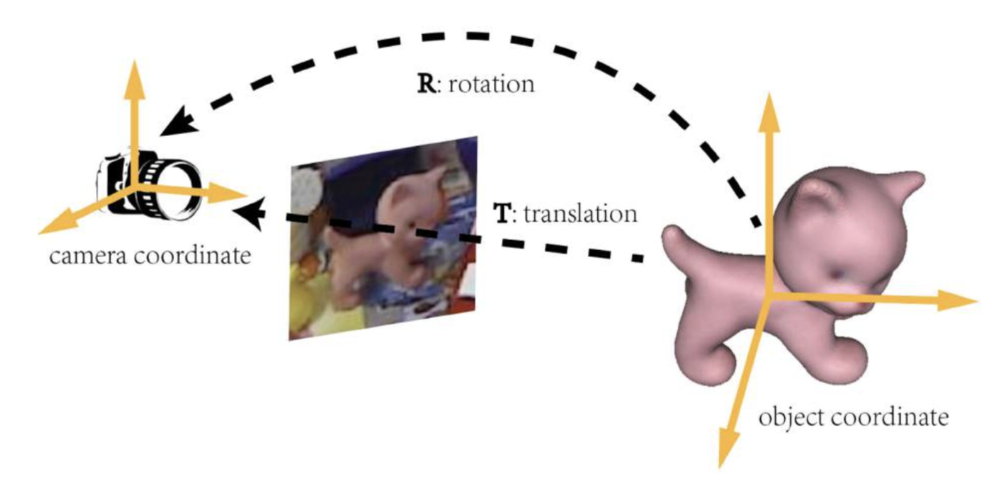 目标姿态估计(object pose estimation) 是指估计物体相对于相机坐标系的三维位置和方向。