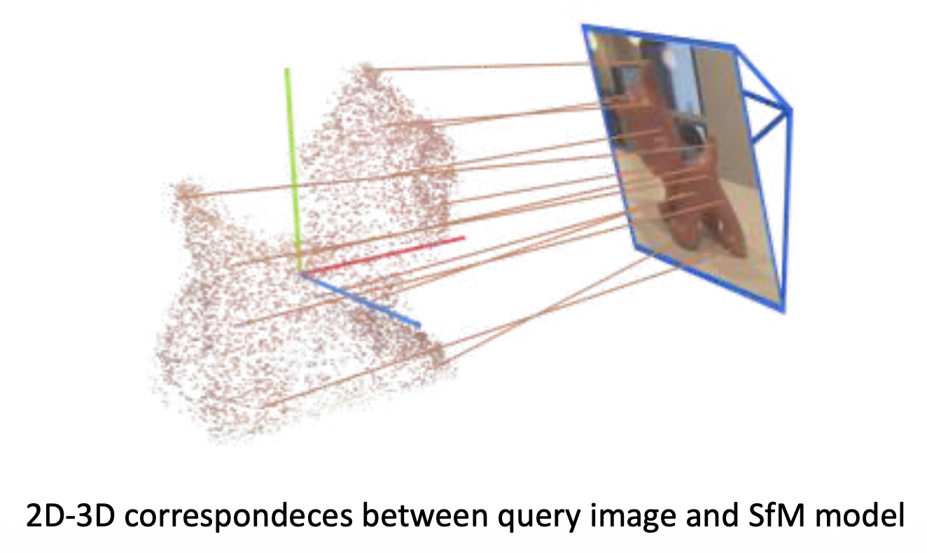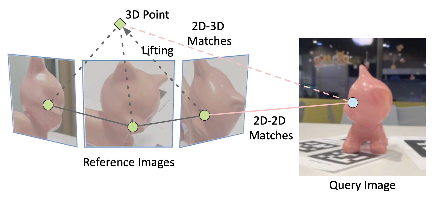 然后通过提升 2D-2D 匹配到 3D 来获得 2D-3D 对应关系