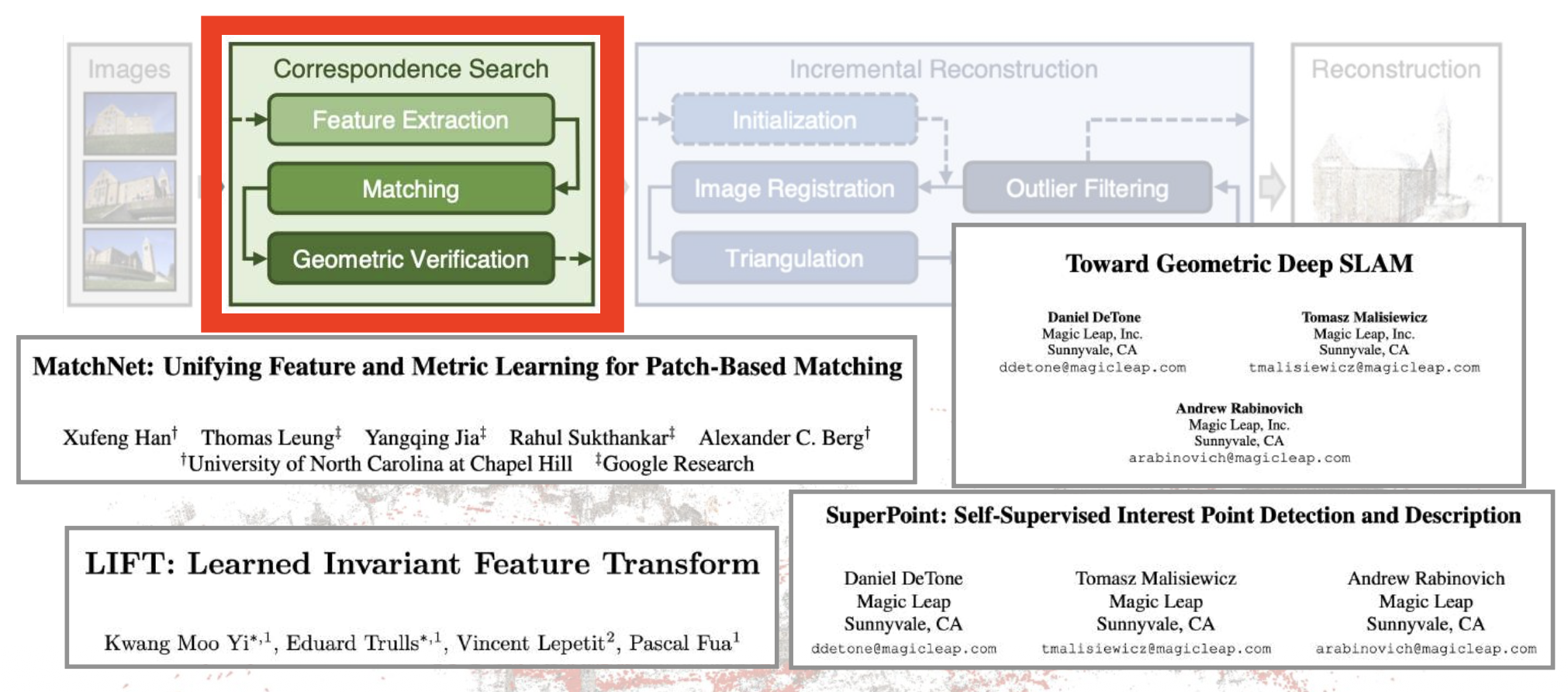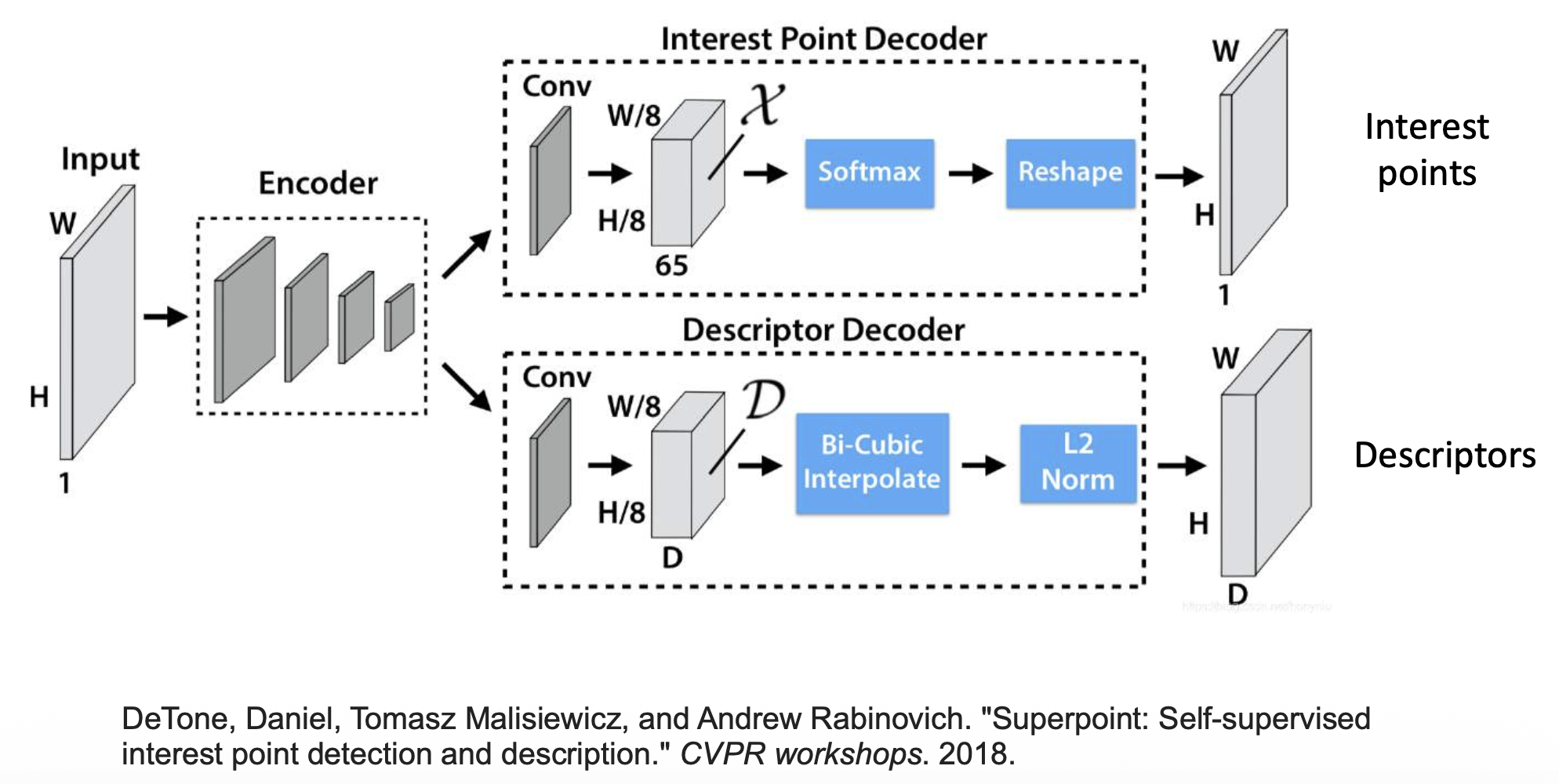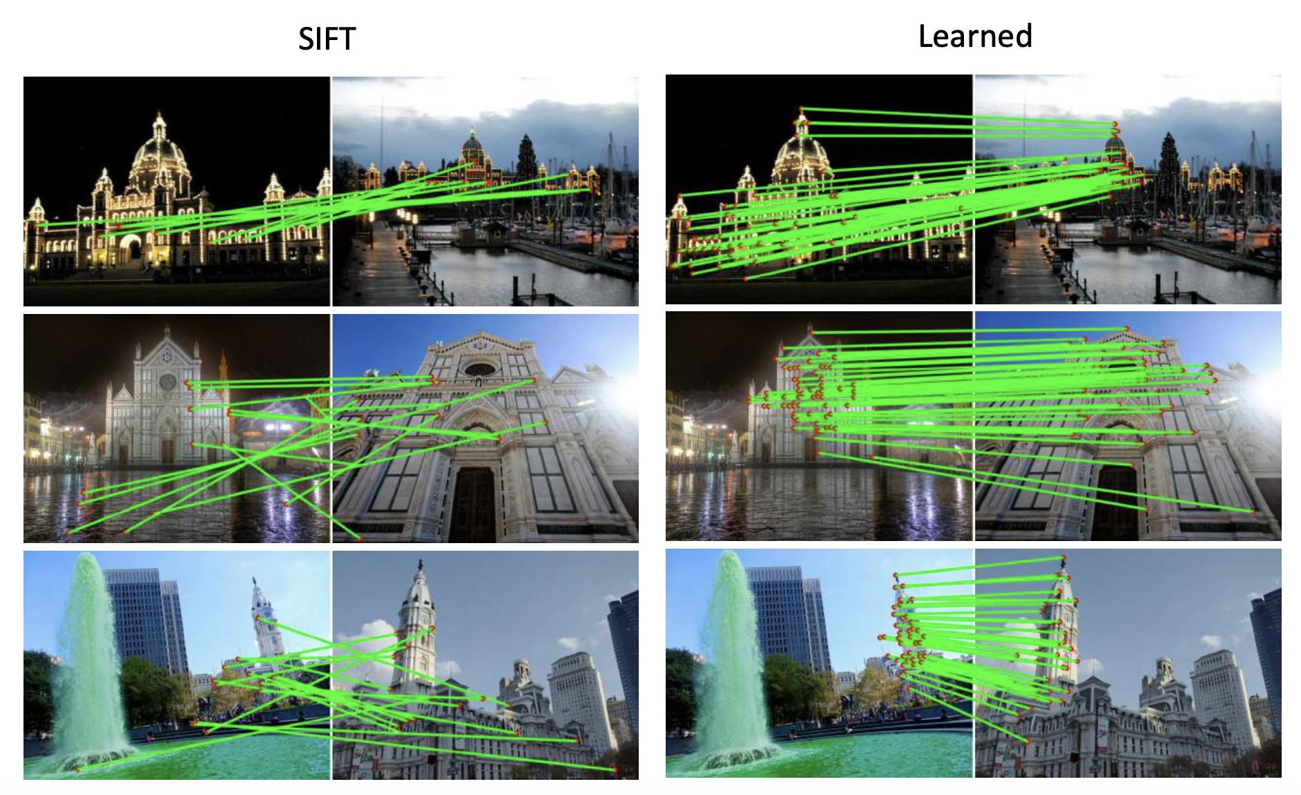 - 传统的特征检测器和描述器是手工制作的(比如 DoG, SIFT, ORB...)