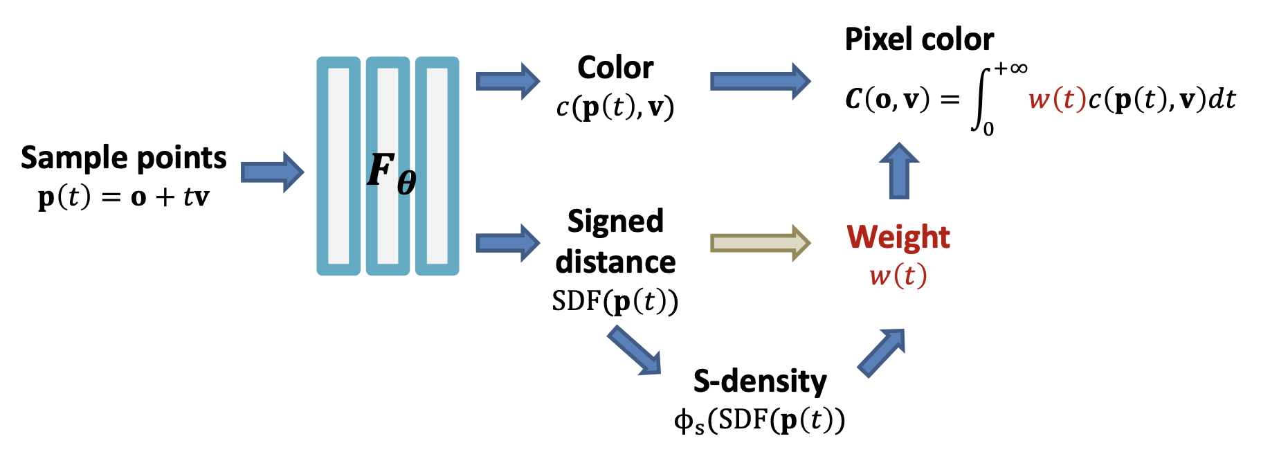 辐射场可以通过体渲染转换为图像,这是可微分的。
