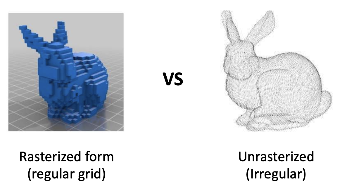 其中,点云是 N 个无序(orderless) 点,每个点用 D 维坐标表示