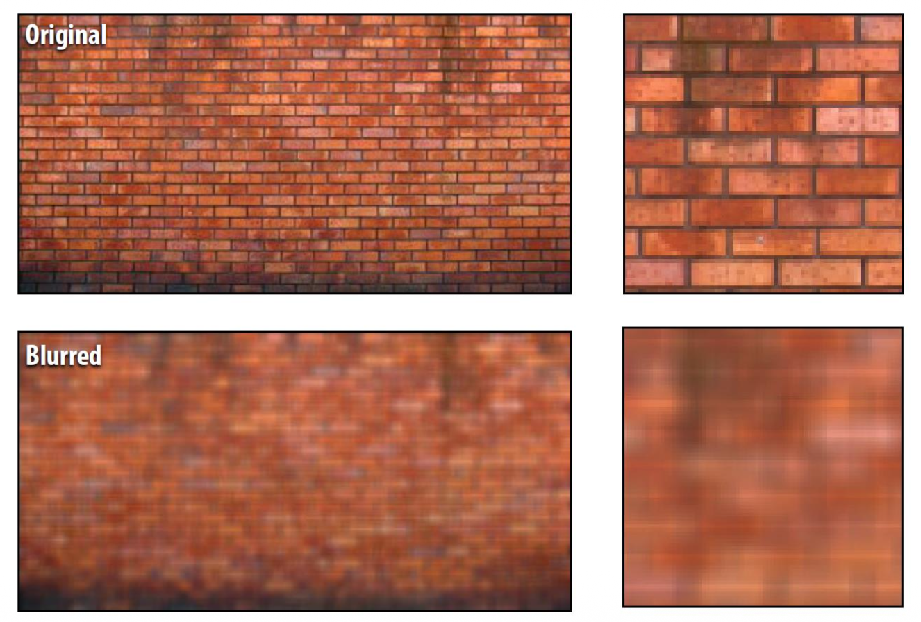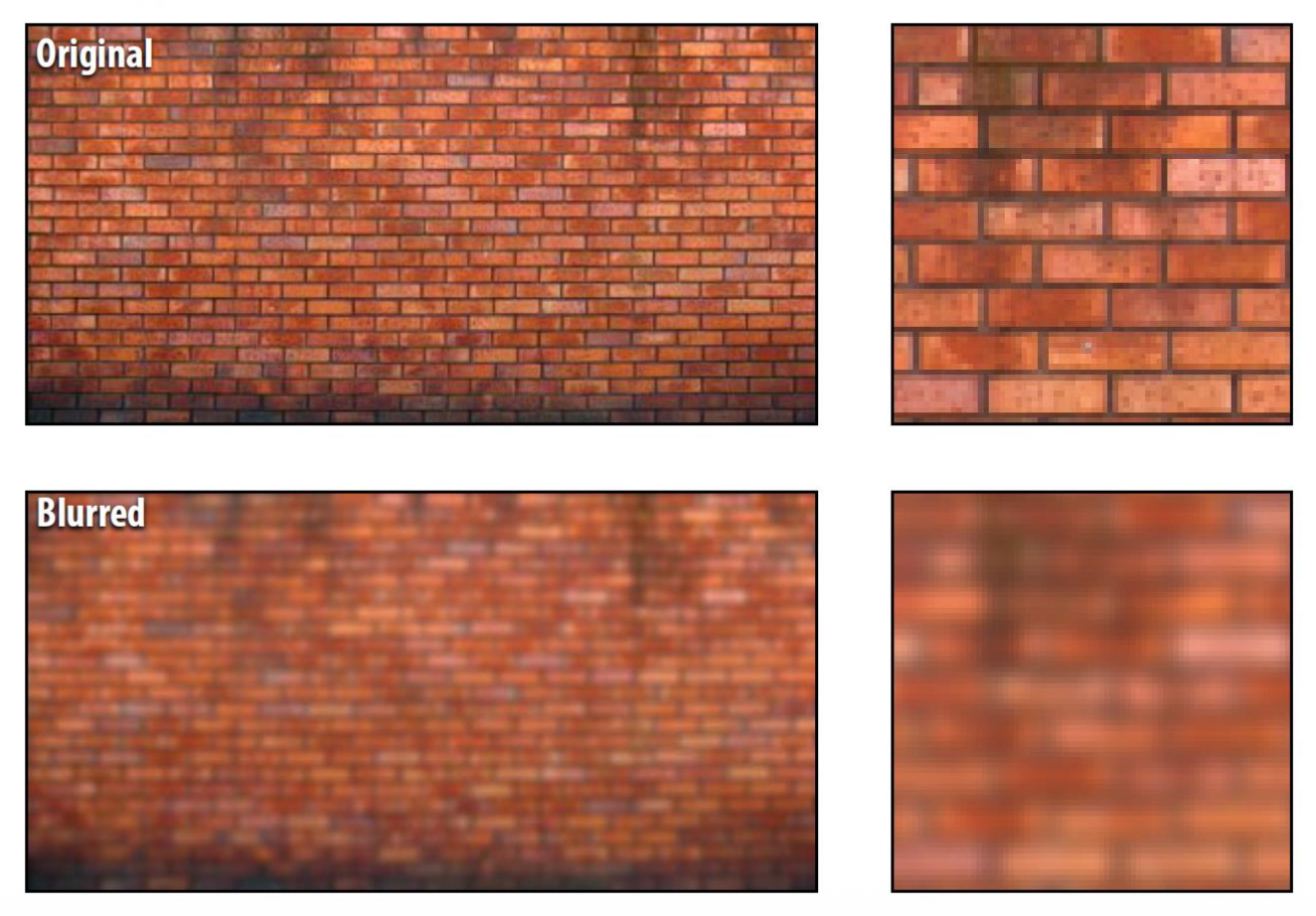 滤波器大小为 7x7 的高斯模糊效果如下,可以看到模糊后的图像不会真的糊成一团,图像的原特征还是得到一定保留的(比如砖头间的缝隙等