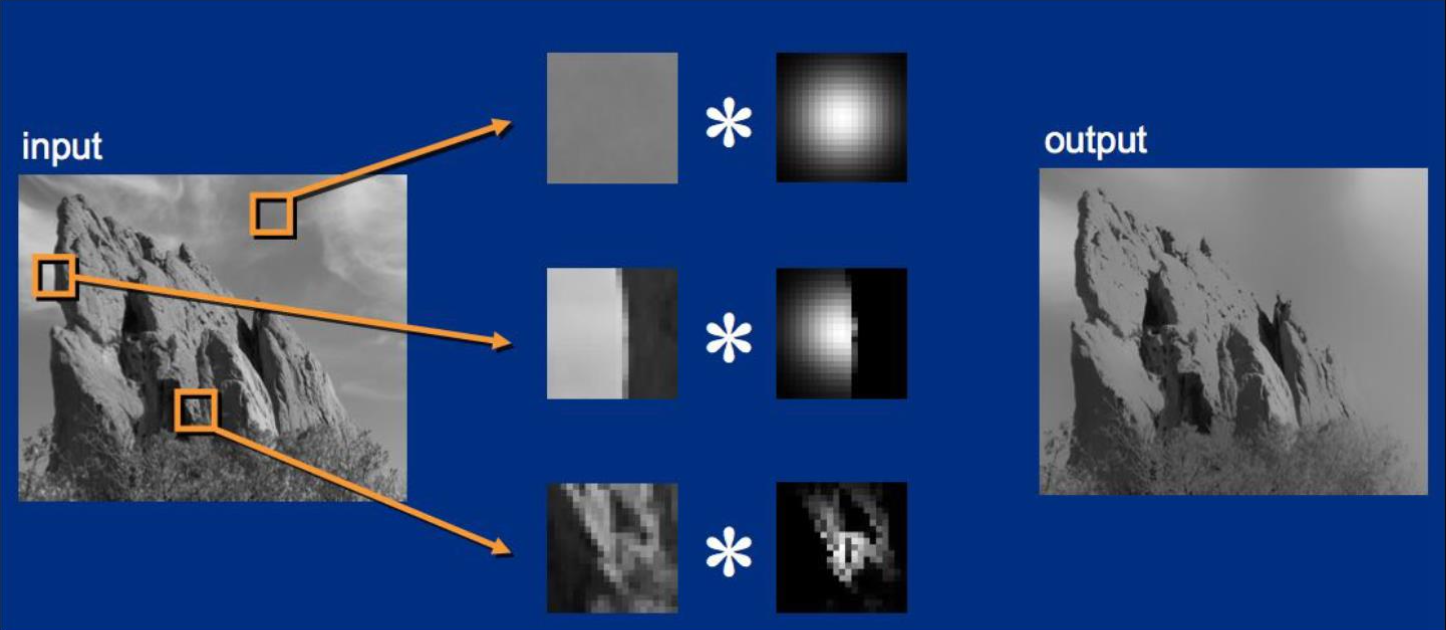 输出图像的每个像素就是滤波器范围内像素值的加权和,这些邻近像素的贡献随距离增加而衰减(想想正态曲线