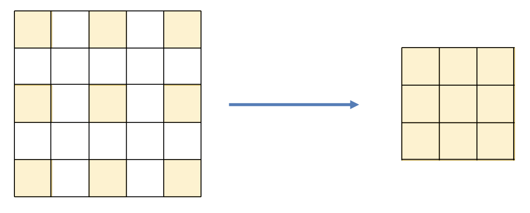 缩放操作涉及到对图像的采样(sampling),比如缩小图像就是一个降采样(down-sampling) 的过程: