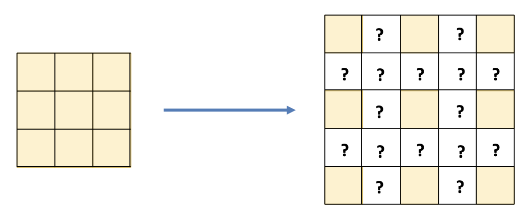 这显然会遇到一个问题:如何插入这些原本不存在的像素呢?解决方案就是插值(interpolation)。