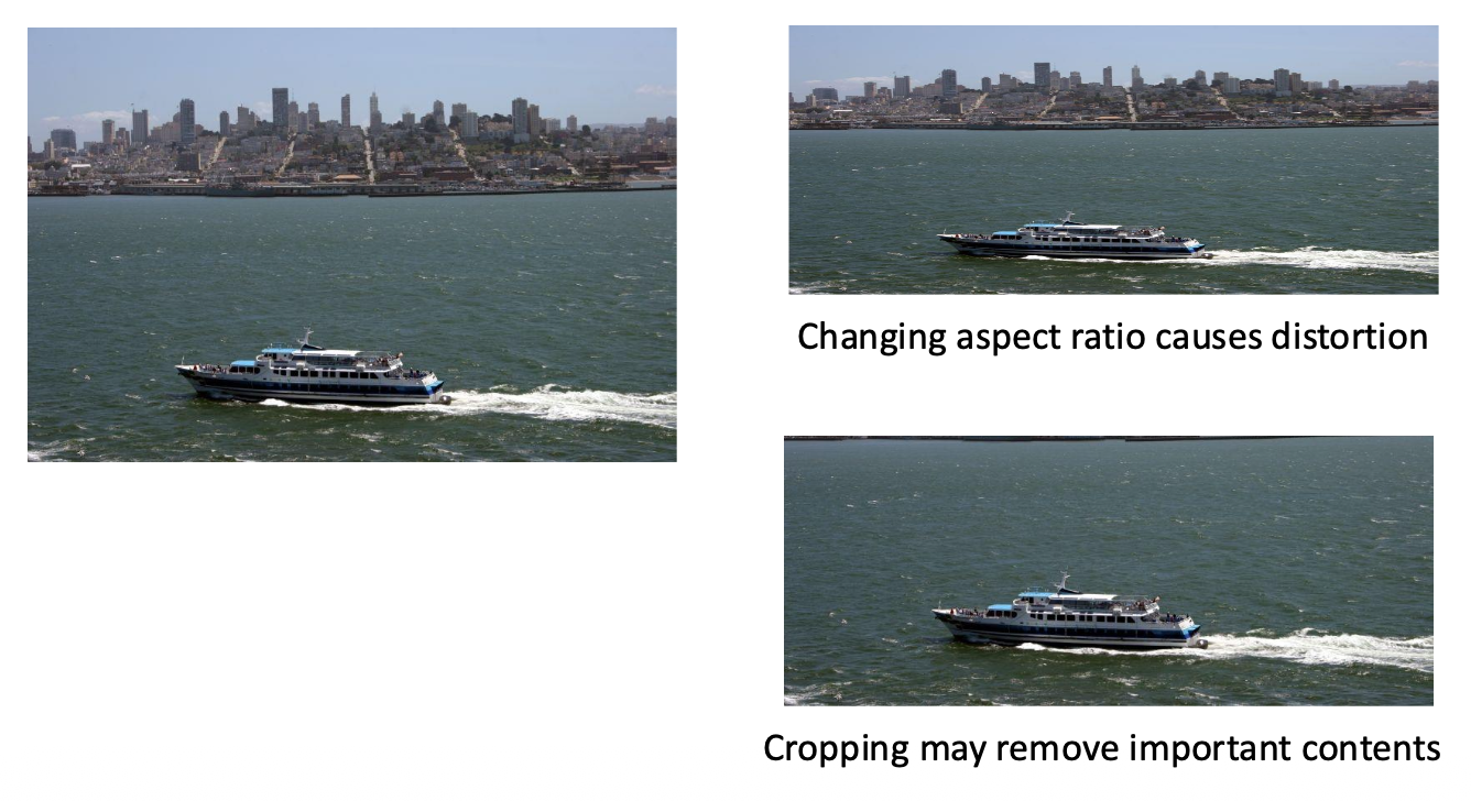 如果处理不当,仅通过缩放图像(不是剪切 (cropping))来改变图像宽高比会导致图像内容的变形 (distortion)。