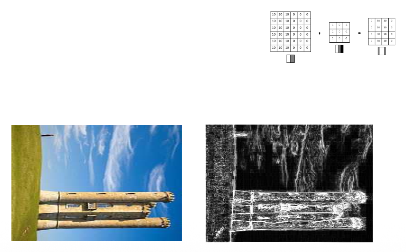 以下两个矩阵分别对应检测垂直和水平边的滤波器: