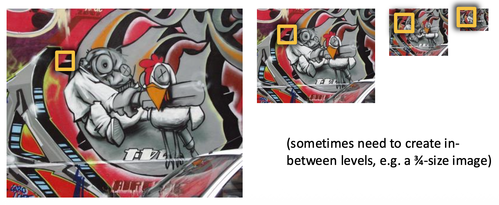 我们可以采用固定窗口大小,并结合图像金字塔的方法来实现,而不是用越来越大的窗口计算 \(f\)
