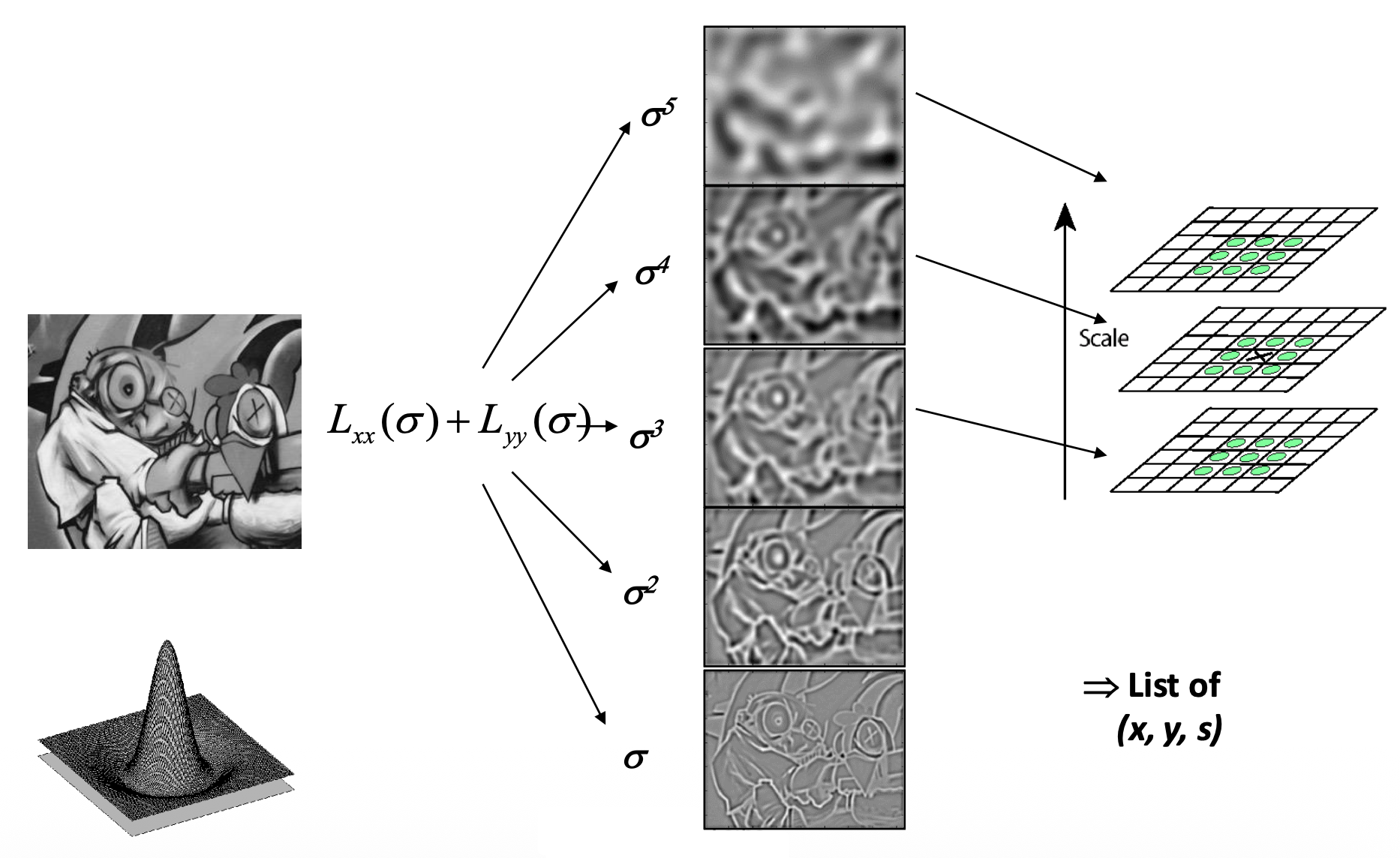 • LoG 的比例受高斯函数的 \(\sigma\) 控制
