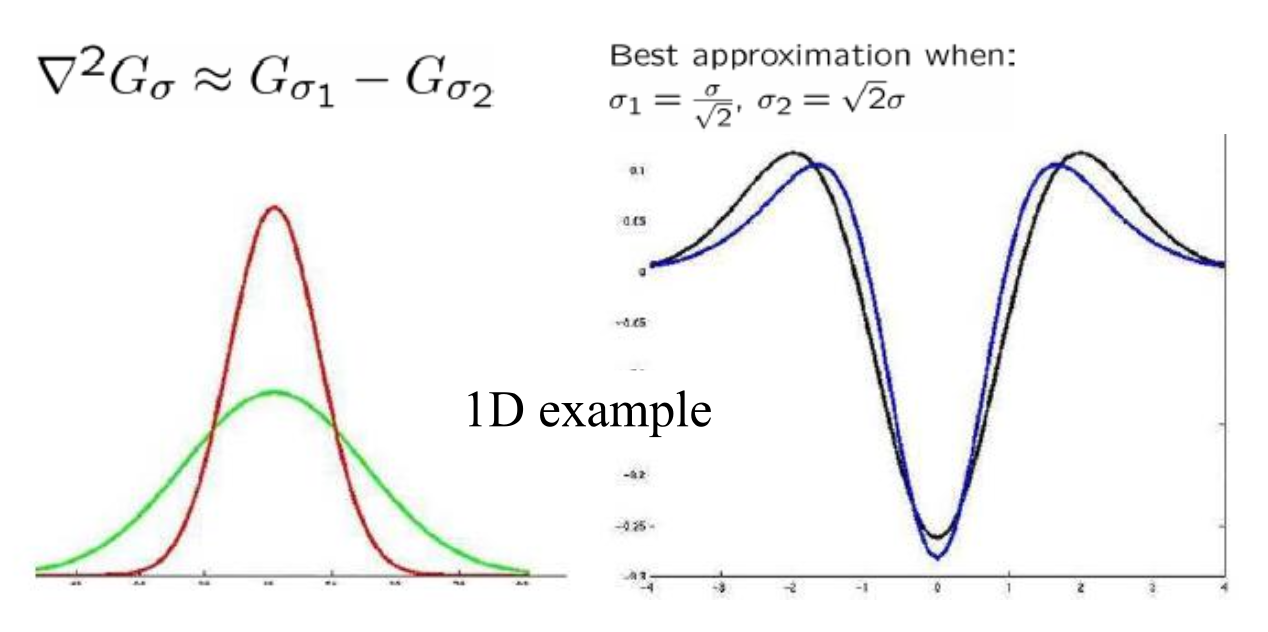 LoG 可用两个高斯函数差(difference of Gaussian, DoG) 近似