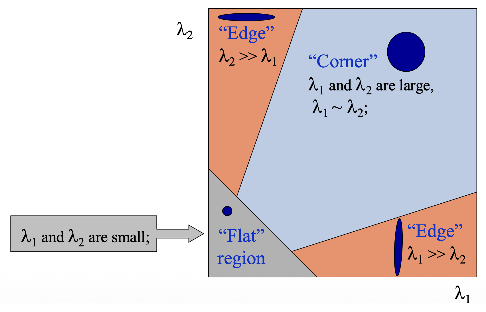 • 平滑(flat) 区域:沿任意方向都不会改变