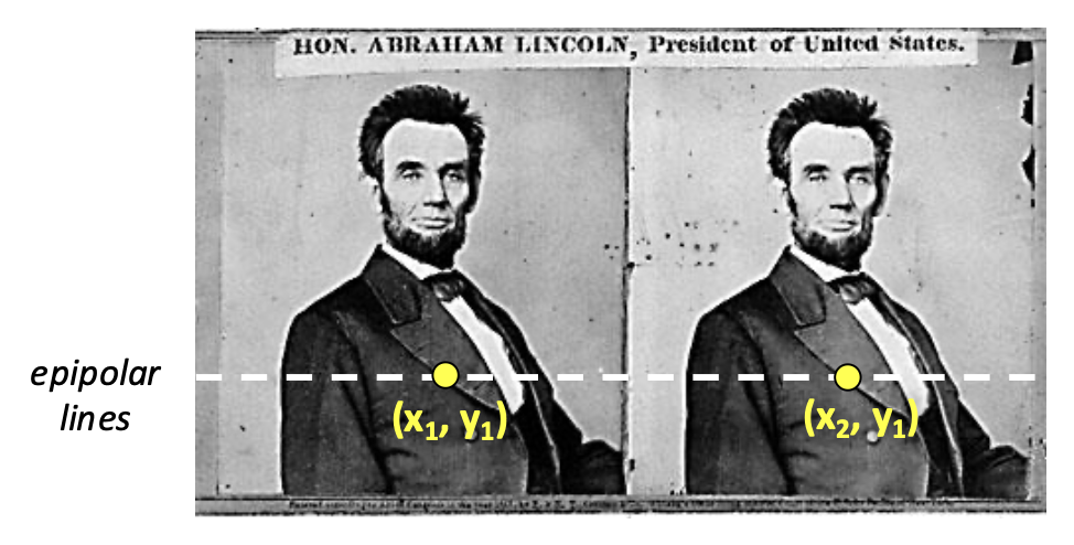 立体匹配算法的思路是:在共轭 (conjugate) 极线中匹配像素(假设亮度恒定