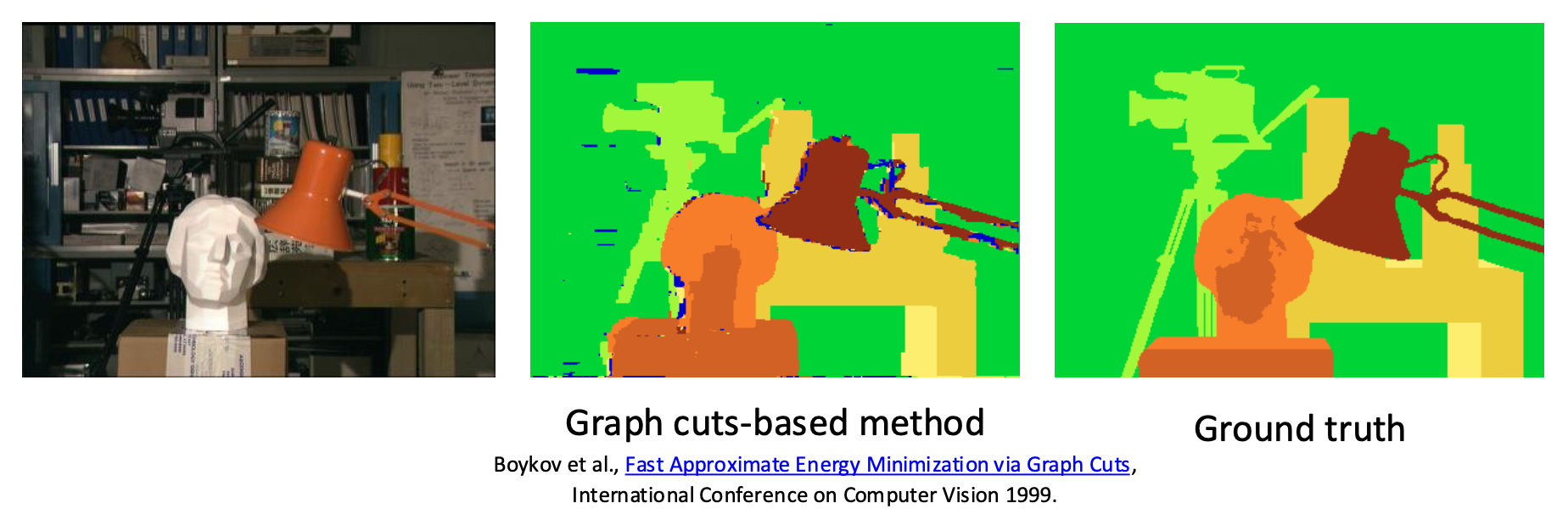 - Potts 模型:\(V(d_p,d_q)=\begin{cases}0&\mathrm{if~}d_p=d_q\\1&\mathrm{if~}d_p\neq d_q&\end{cases}\)