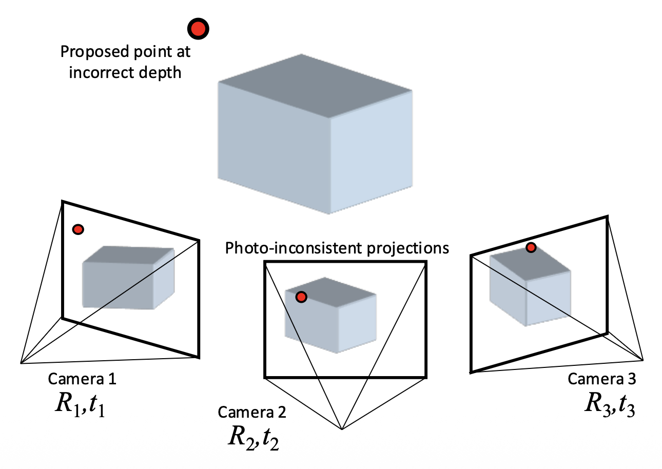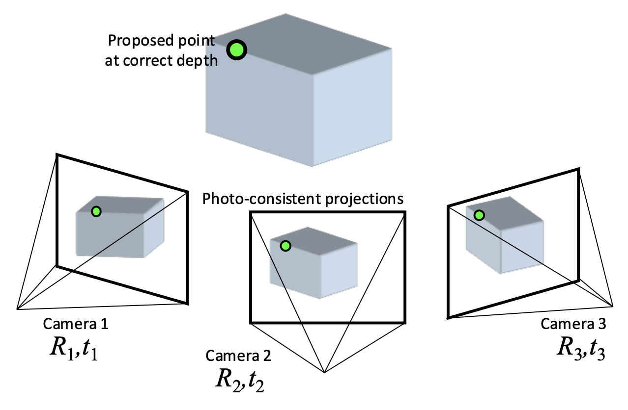 在 MVS(多视角立体)中,将上述算法中的块偏移量替换为深度值。