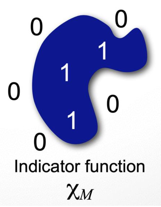 \chi_M(p)=\begin{cases}1&\mathrm{if~}p\in M\\0&\mathrm{if~}p\notin M&\end{cases}