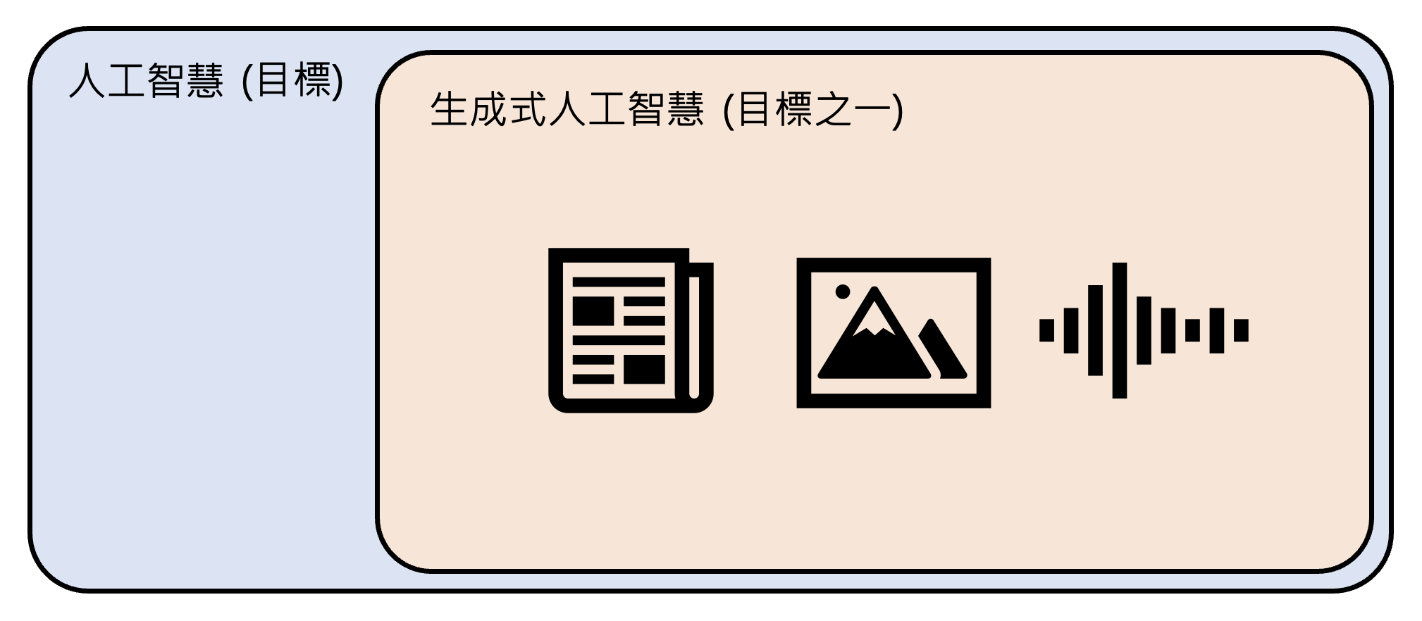 人工智能和生成式人工智能属于包含关系,因此生成式 AI 也是我们想要实现的目标之一。