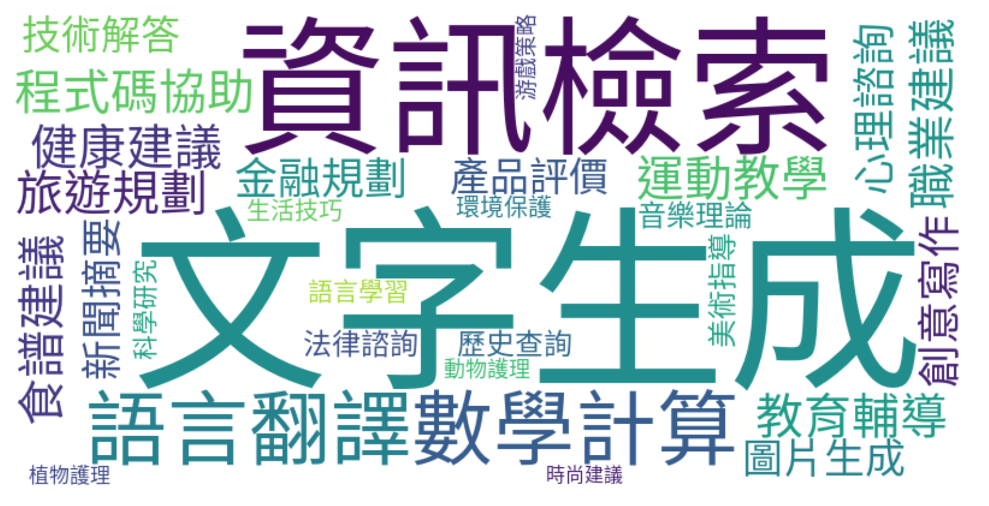 下面是李宏毅老师用 ChatGPT 绘制的关于 ChatGPT 能够干什么的词云: