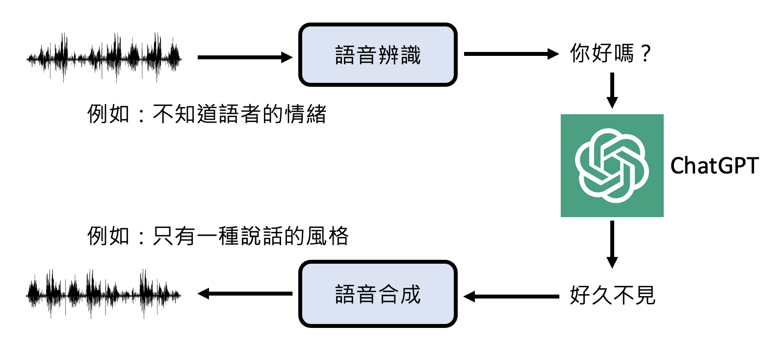 在看完 GPT-4o 的 demo 后,李宏毅老师认为 GPT-4o 下的 ChatGPT 可能是在原来的基础上加了一些额外的模块,从而解决上述问题。