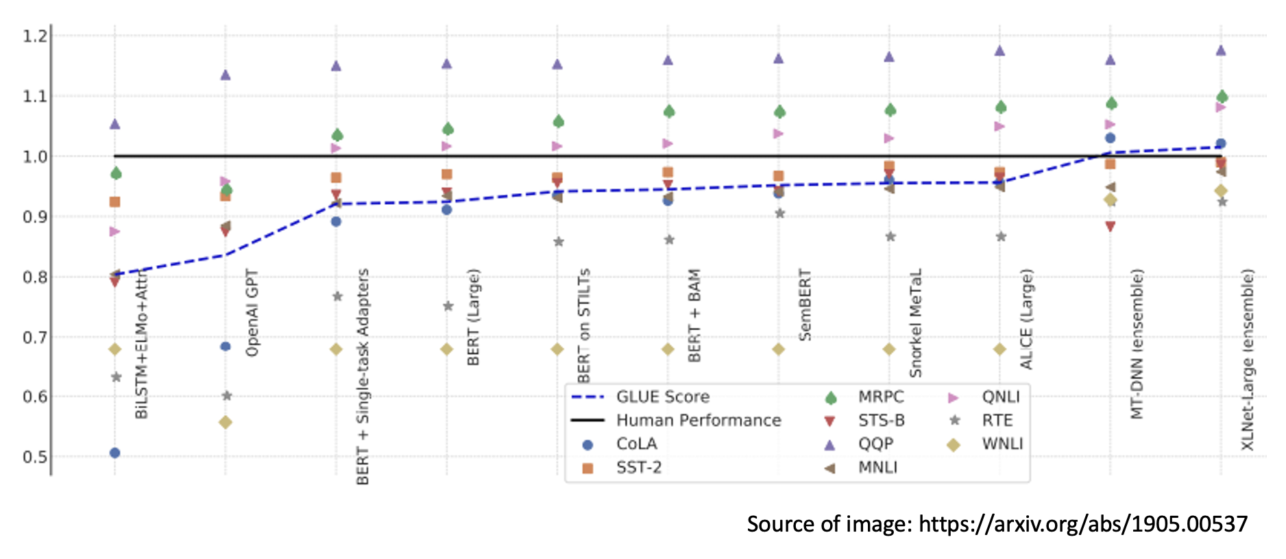 各个 BERT 变体的表现: