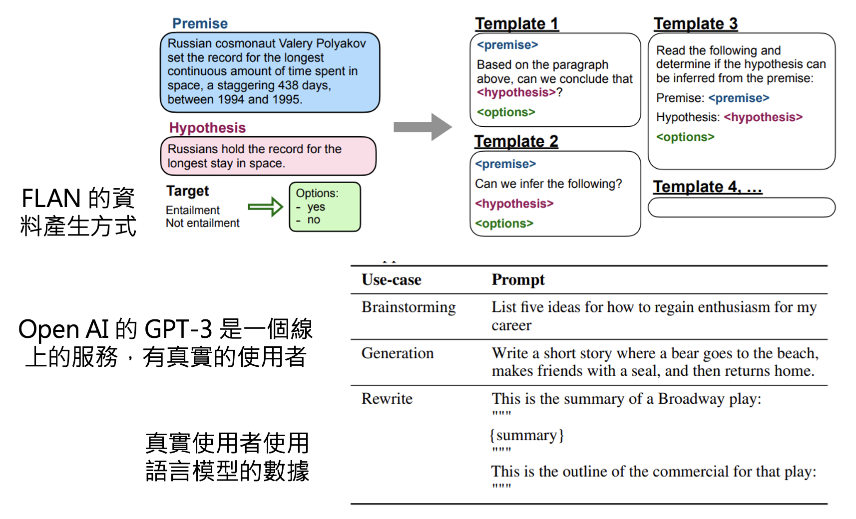 之所以微调后的 GPT-3 表现更好,是因为 FLAN 训练数据产生的方式比较死板——采用自然语言推理的前提、假设的模板;而 GPT-3 是一个线上的服务,有真实用户,因此它可以拿真实用户使用语言模型的数据来训练。