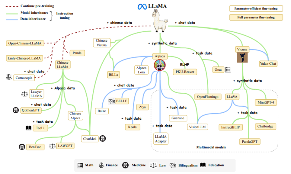 下面是一些基于 LLaMA 微调后的模型: