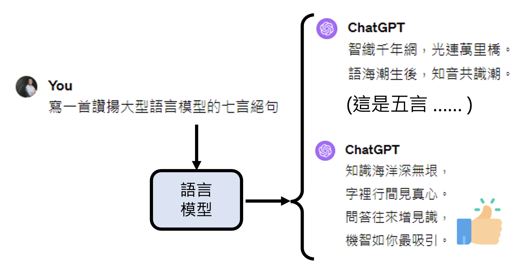 • 语言模型在第一阶段(预训练)和第二阶段(指令微调)的时候,也是跟着人类老师说的做