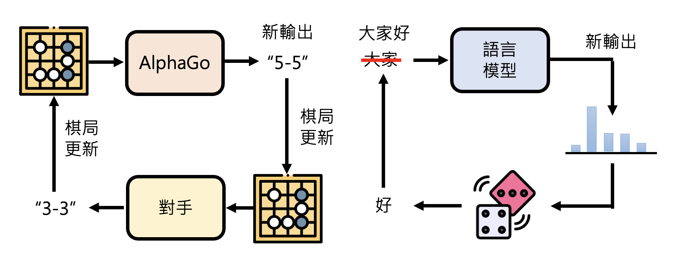 将语言模型和 AlphaGo 做比较,你会发现两者有不小的相似性。