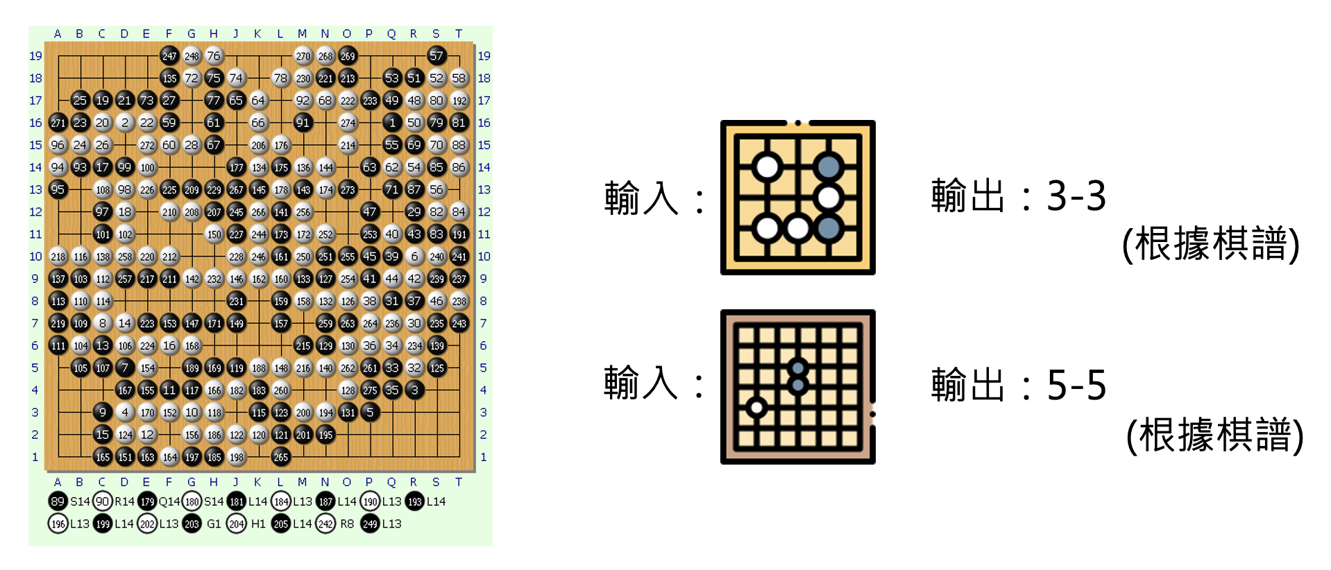 • AlphaGo 根据棋谱学习,人类老师下哪里就跟着下哪里