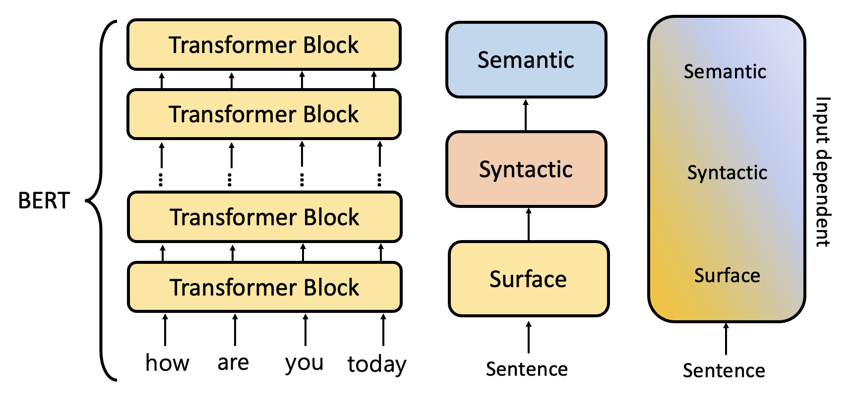 将训练好的词性分类器用其他句子做测试,如果分类器能成功分类,那就说明这一层的嵌入向量包含词性信息,反之则没有。我们称这样的技术为探测(probing)。