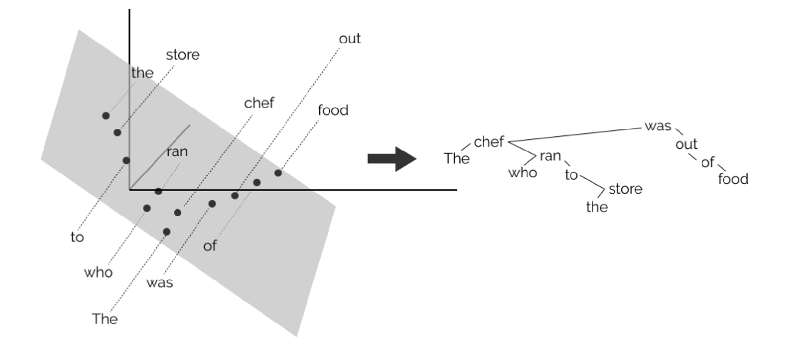 语法树(John Hewitt, Christopher D. Manning, A Structural Probe for Finding Syntax in Word Representations, NAACL, 2019