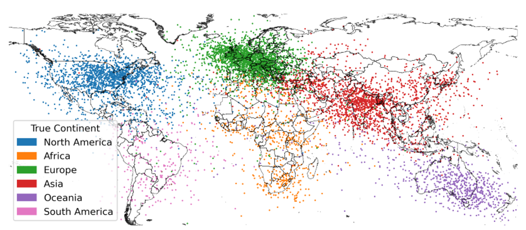 就像将天上的恒星投影在特定平面上形成各式各样形象的星座,我们也可以将多维嵌入向量投影在二维平面上。如果找到合适的平面的话,那么就能显现出在嵌入向量内的部分有效信息,比如: