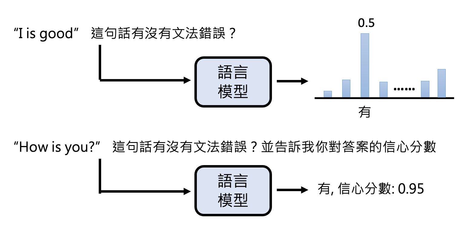 在过去,因为我们知道模型的输出是从某个概率分布中随机采样得到的,所以会通过这个分布来看模型对答案的信心程度(上图