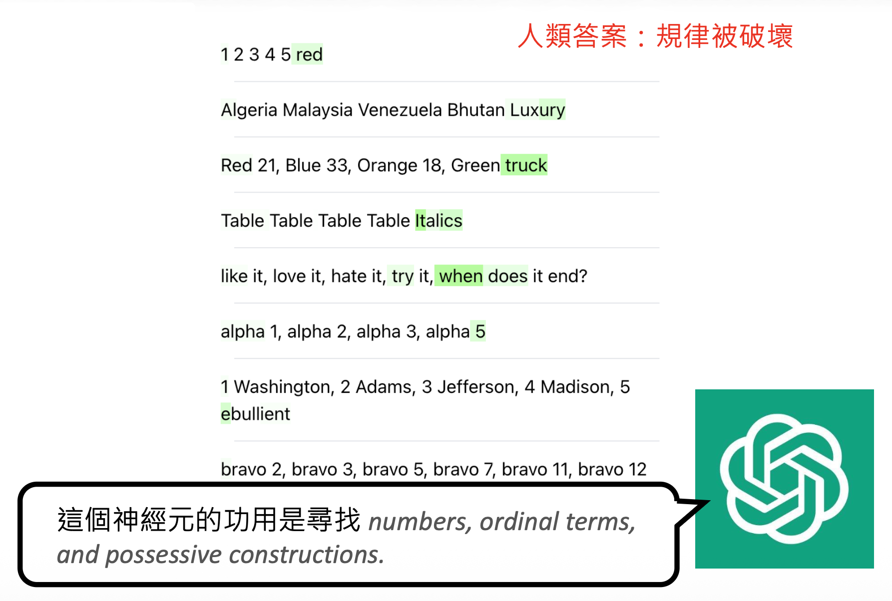 但实际情况下,并不是所有神经元都是像上面例子那样好解释。对于那些复杂的神经元,我们就可以交给威力更大的语言模型(比如 ChatGPT,下面就是以 GPT-4 为例)解释。