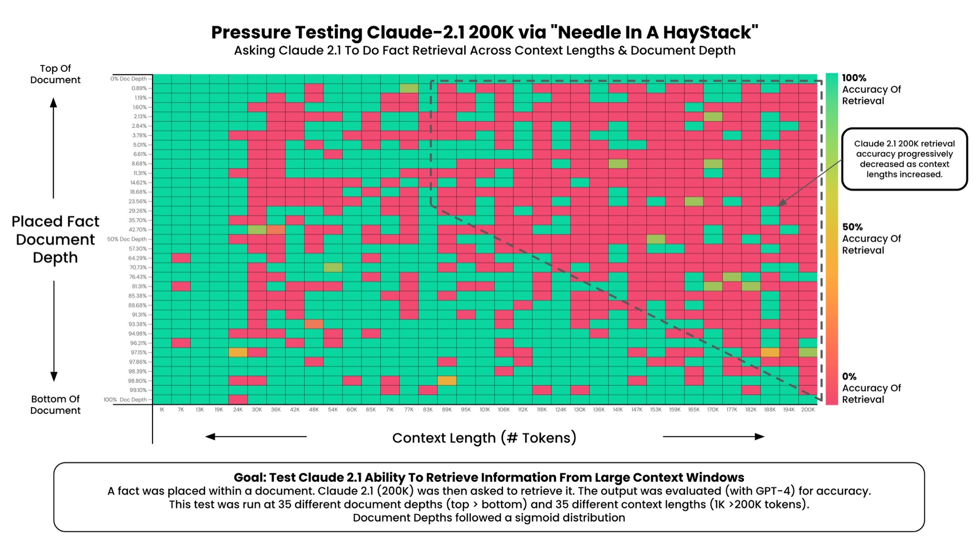 Claude 2.1:号称拥有很强的上下文阅读能力,但表现相当糟糕