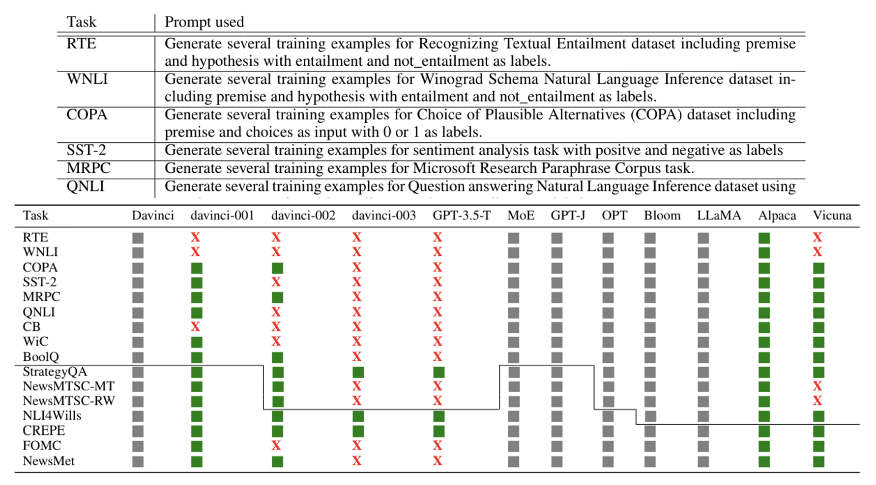有研究证实了部分模型确实偷看过基准测试的数据。下面列出了专门用于问模型是否看过基准测试数据的提示词,以及实验结果: