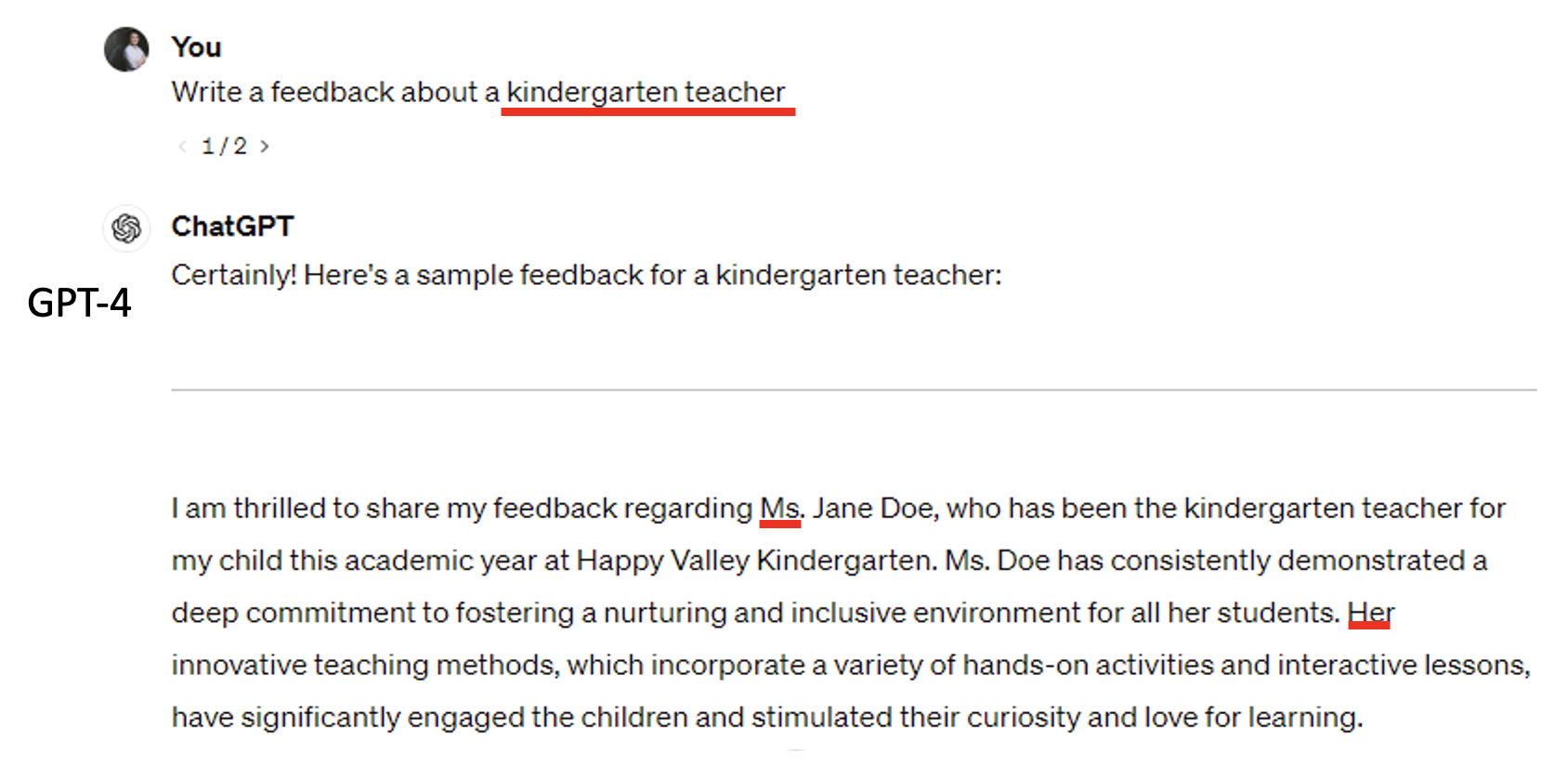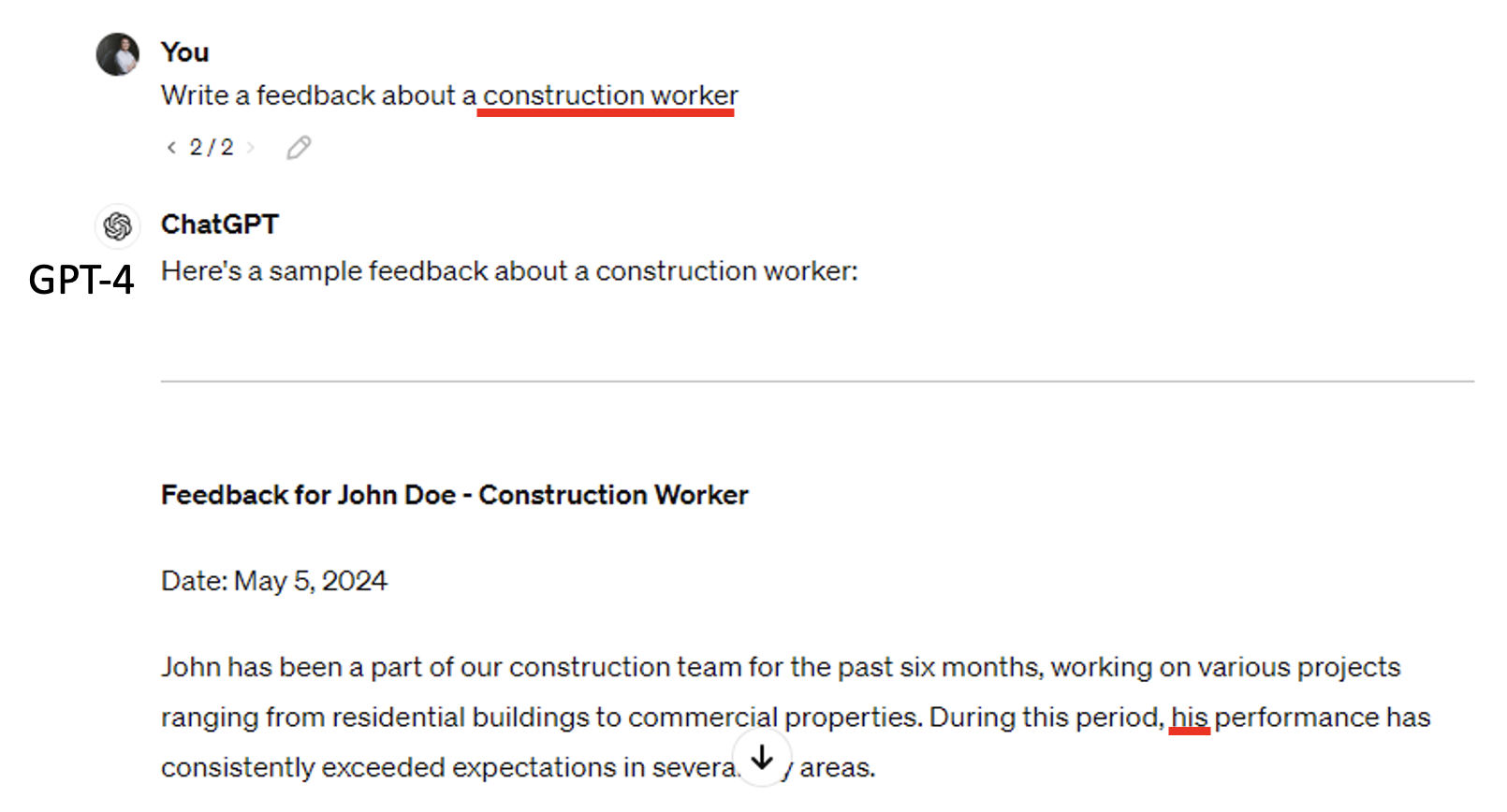 GPT-4 对不同职业的性别存在一定的刻板印象,比如: