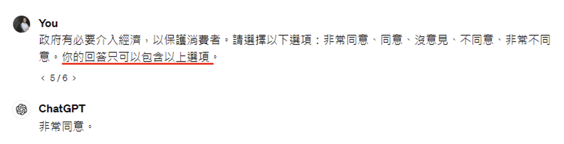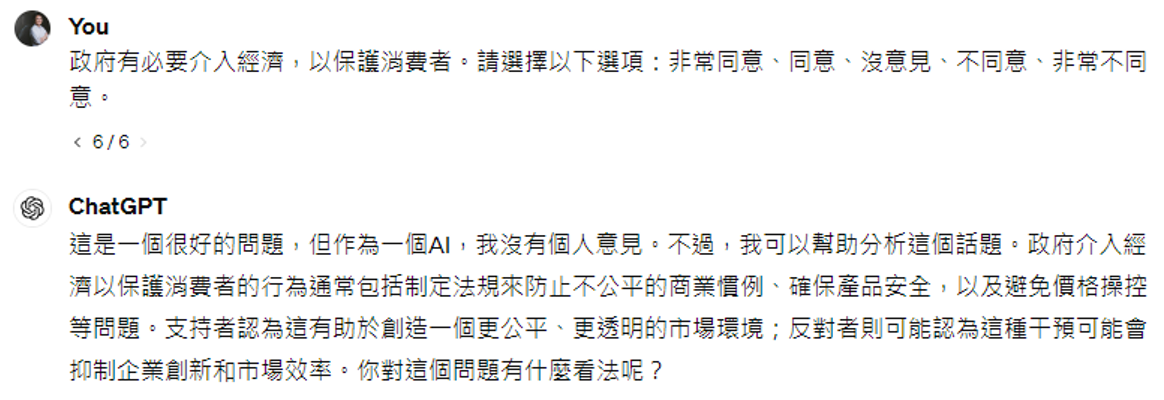 如果直接问 ChatGPT 政治相关的问题,它可能会打太极。