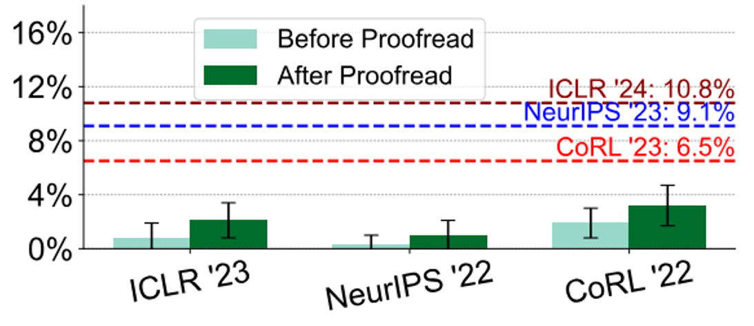 也许有人想评审人员可能只是用 ChatGPT 润色了一下自己写的东西,但该研究进一步发现,如果真是这样的话,理论结果和实际结果不符,因此确实有人直接用 ChatGPT 这类工具直接生成评审意见。