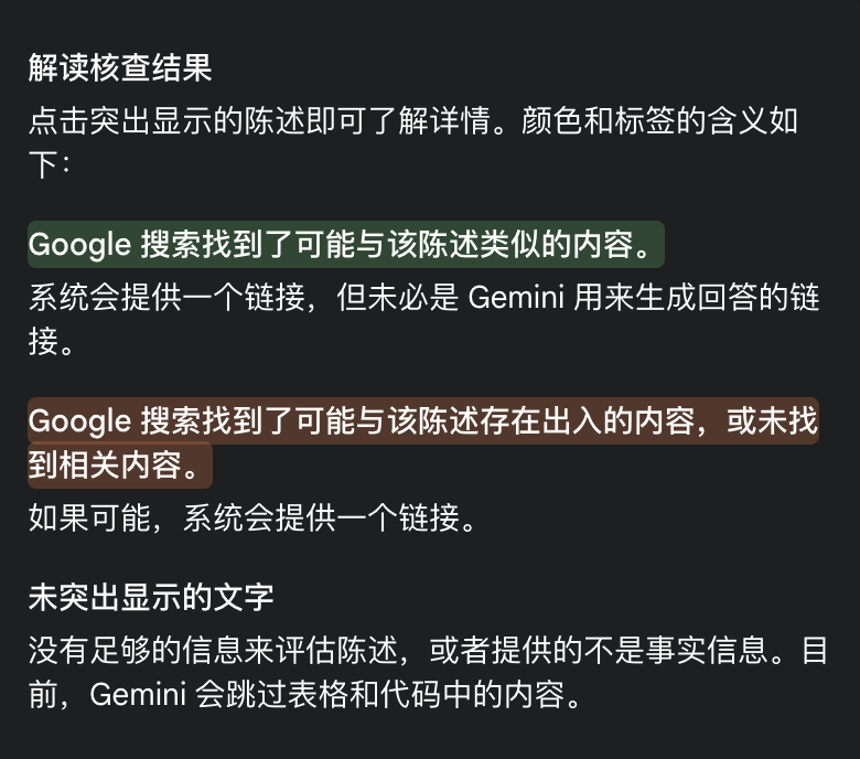 这是 Gemini 核查回答功能相关的记号说明: