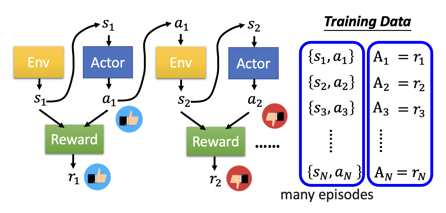 最简单的做法是将每轮交互中产生的奖励 \(r_n\) 作为系数 \(A_n\),这样就能激励那些符合我们期望的行为,而打压那些不符预期的行为。