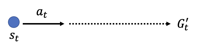 \(G_t'\) 的计算:需要考虑在 \(s_t\) 时采取 \(a_t\) 后的累积奖励